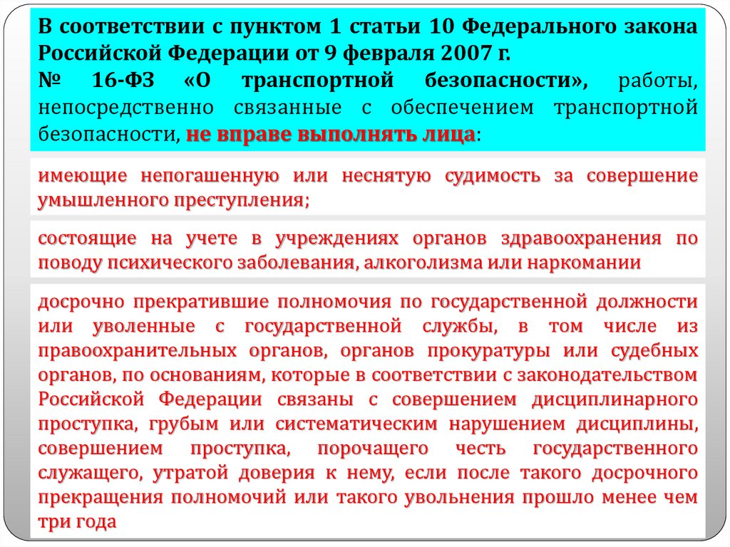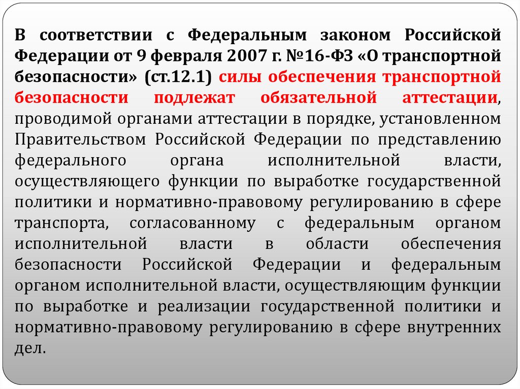 № 16-ФЗ «О транспортной безопасности» подготовка сил