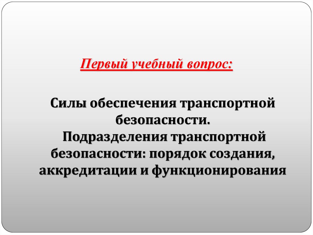 Первый учебный вопрос:Силы обеспечения транспортной