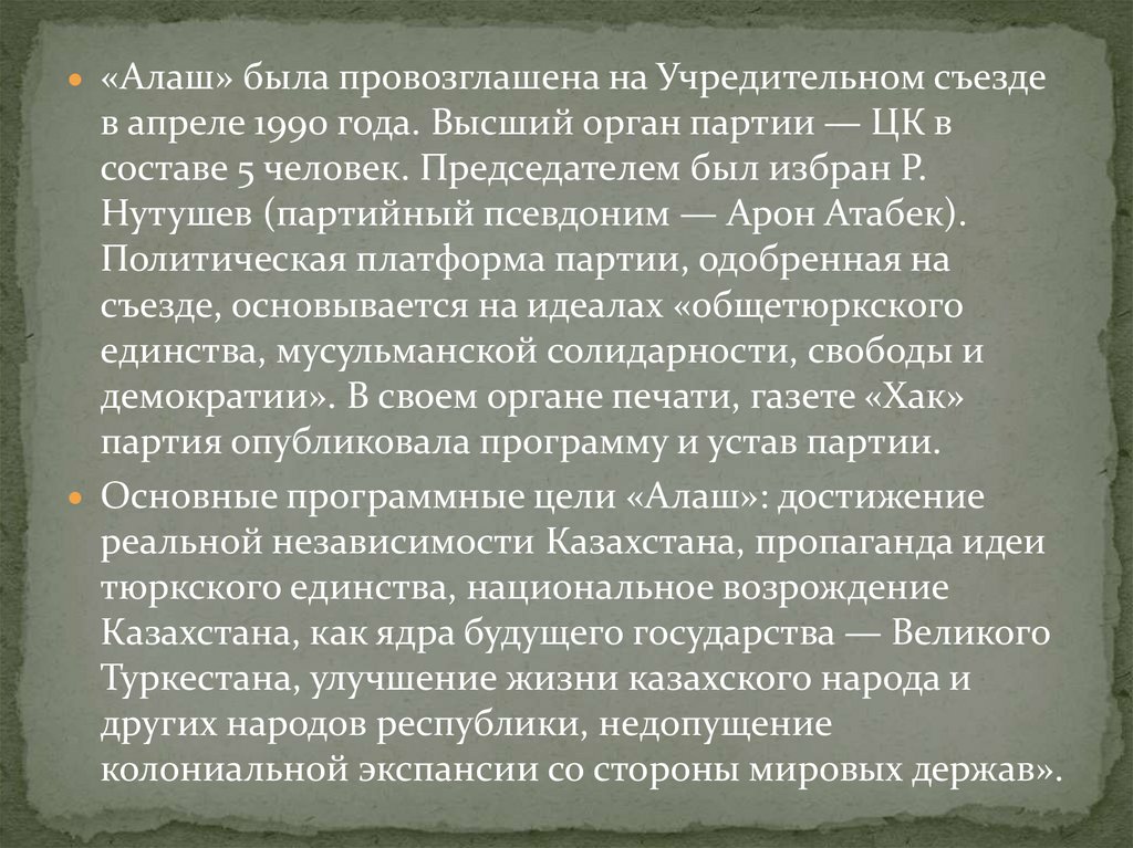 национальной свободы «Алаш» и Национальнодемократическая партия «Желтоксан».
