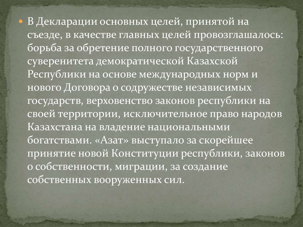 В Декларации основных целей, принятой насъезде, в качестве главных целей провозглашалось: