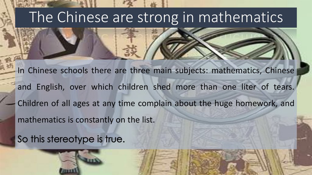 In Chinese schools there are three main subjects: mathematics, Chineseand English, over which children shed more than one liter of tears.