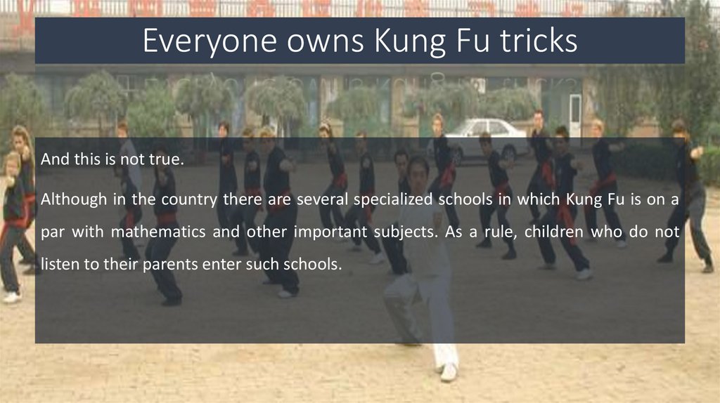 And this is not true.Although in the country there are several specialized schools in which Kung Fu is on a