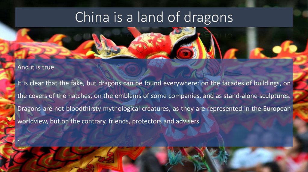 Dragons are not bloodthirsty mythological creatures, as they are represented in the European