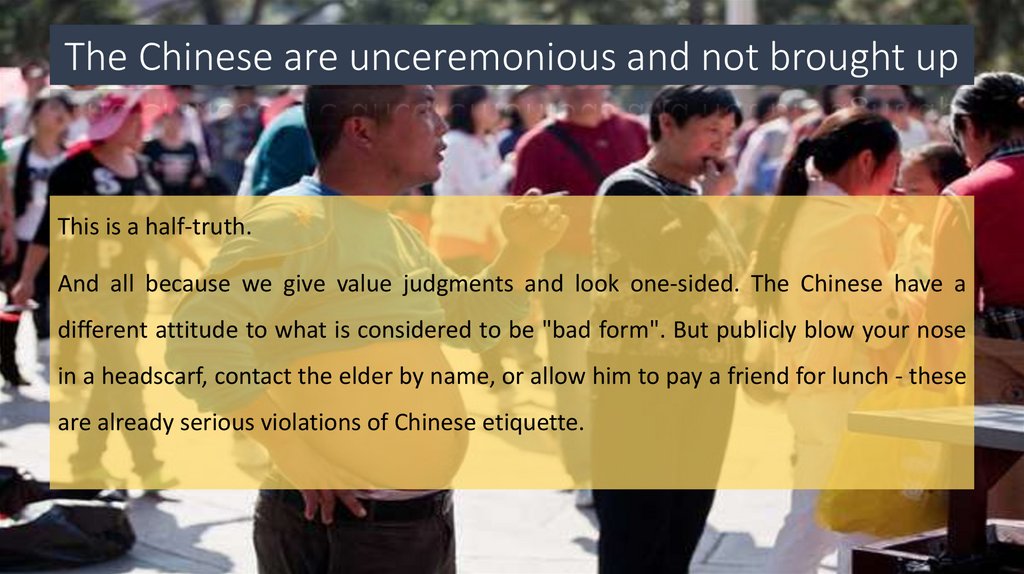 This is a half-truth.And all because we give value judgments and look one-sided. The Chinese have a