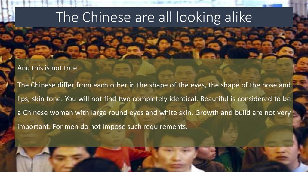 And this is not true.The Chinese differ from each other in the shape of the eyes, the shape of the nose and