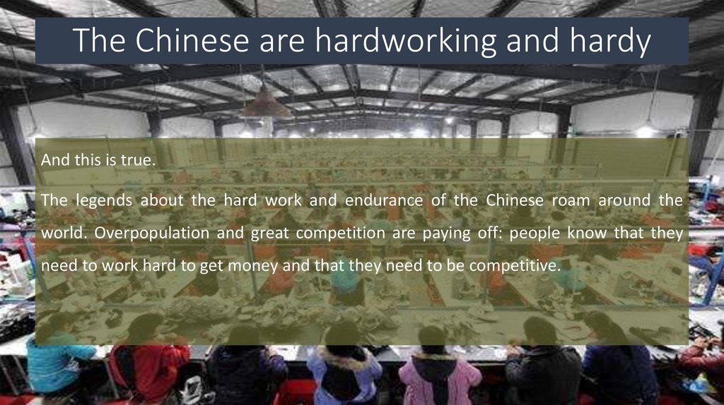 And this is true.The legends about the hard work and endurance of the Chinese roam around the