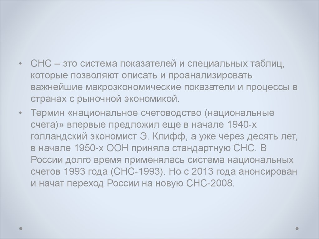 • СНС – это система показателей и специальных таблиц,которые позволяют описать и проанализировать