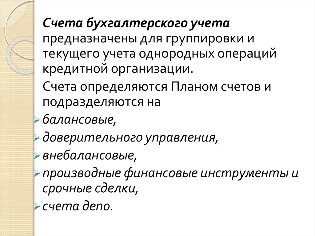План счетов бухгалтерского учета длякредитных организаций имеет следующую