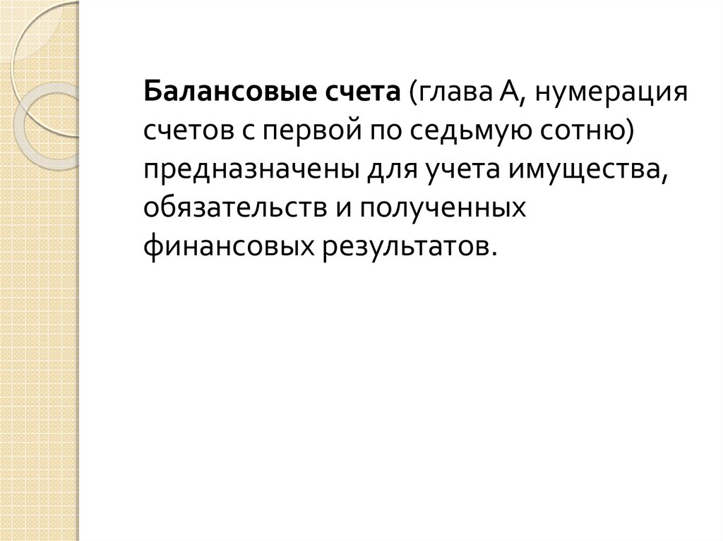 Балансовые счета (глава А, нумерациясчетов с первой по седьмую сотню)