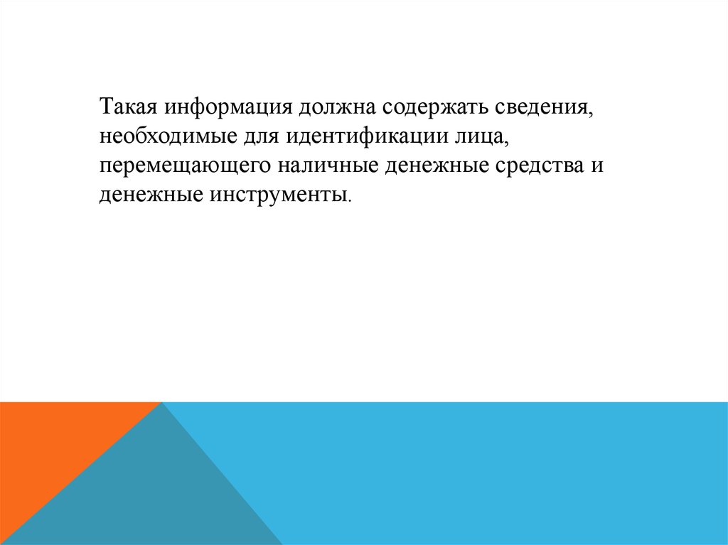 Такая информация должна содержать сведения, необходимыедля идентификации лица, перемещающего наличные