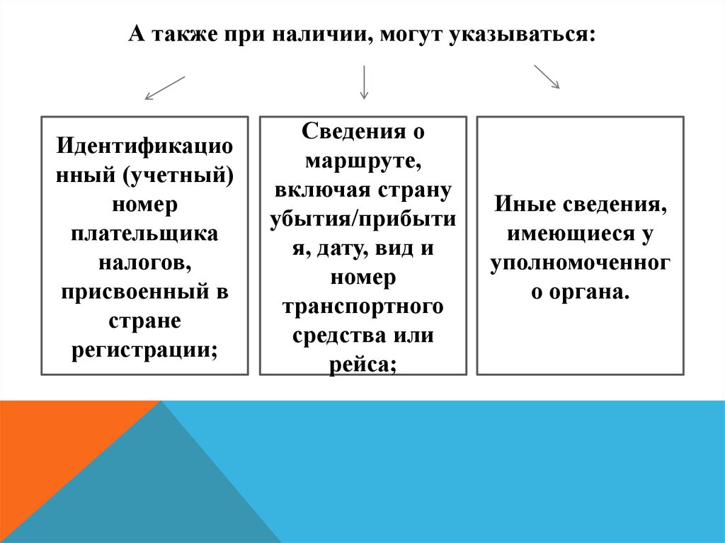 А также при наличии, могут указываться:Идентификацио