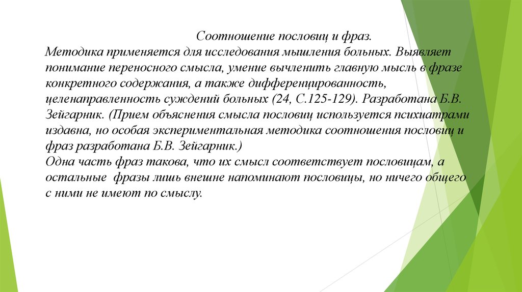 Зейгарник. (Прием объяснения смысла пословиц используется психиатрами