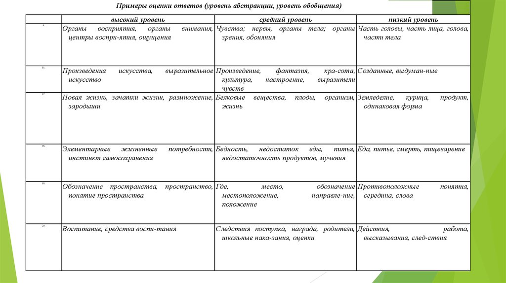 Примеры оценки ответов (уровень абстракции, уровень обобщения)8.