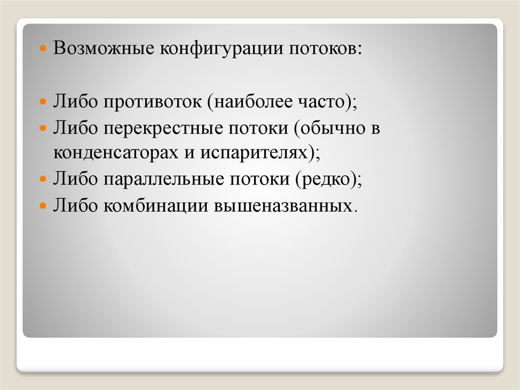 Возможные конфигурации потоков:Либо противоток (наиболее часто);