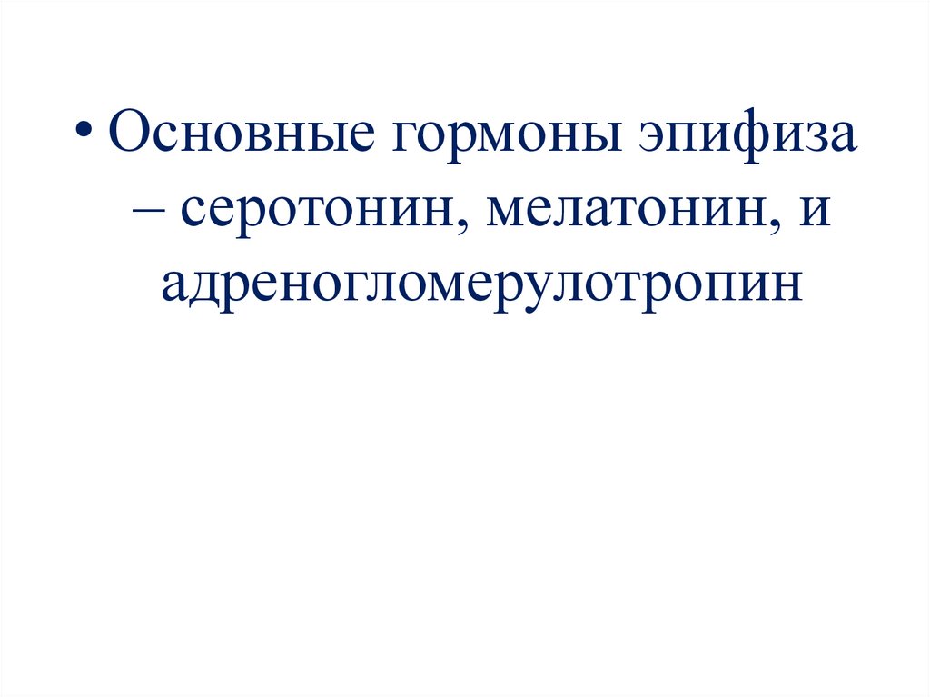 • Основные гормоны эпифиза– серотонин, мелатонин, и