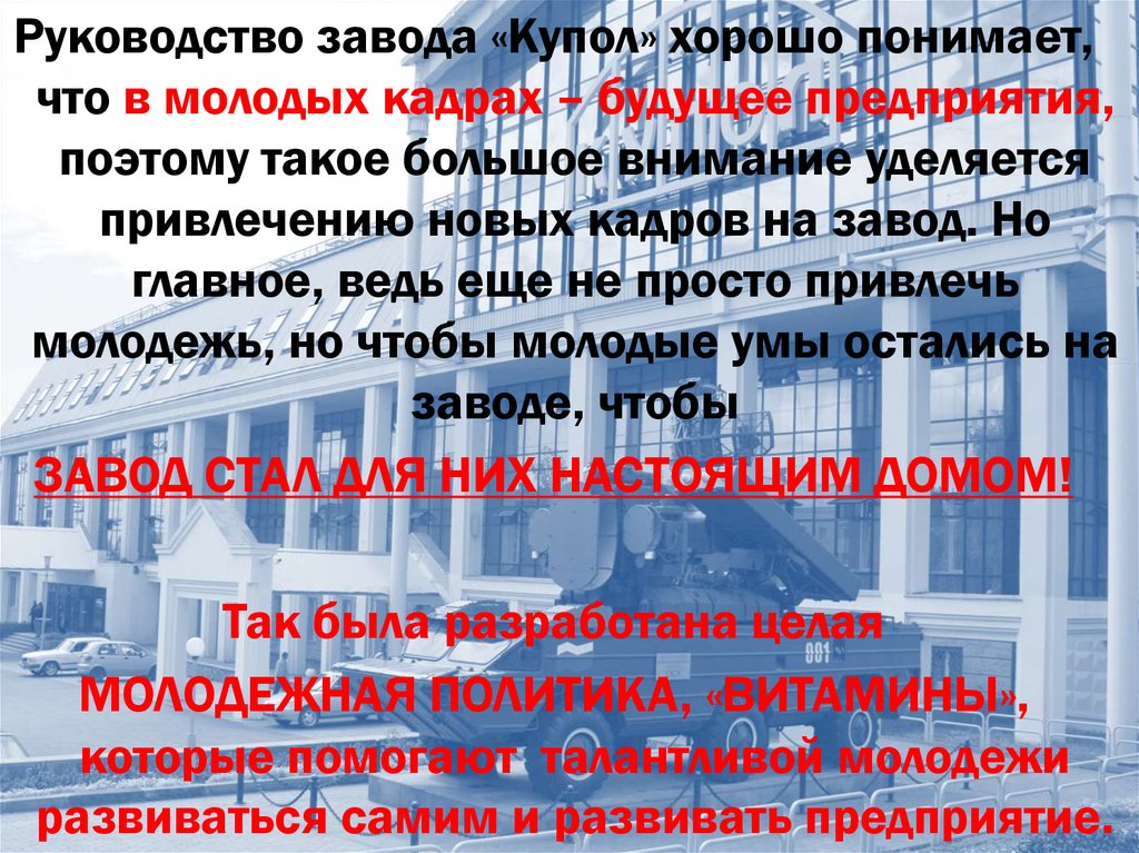 Руководство завода «Купол» хорошо понимает,что в молодых кадрах – будущее предприятия,
