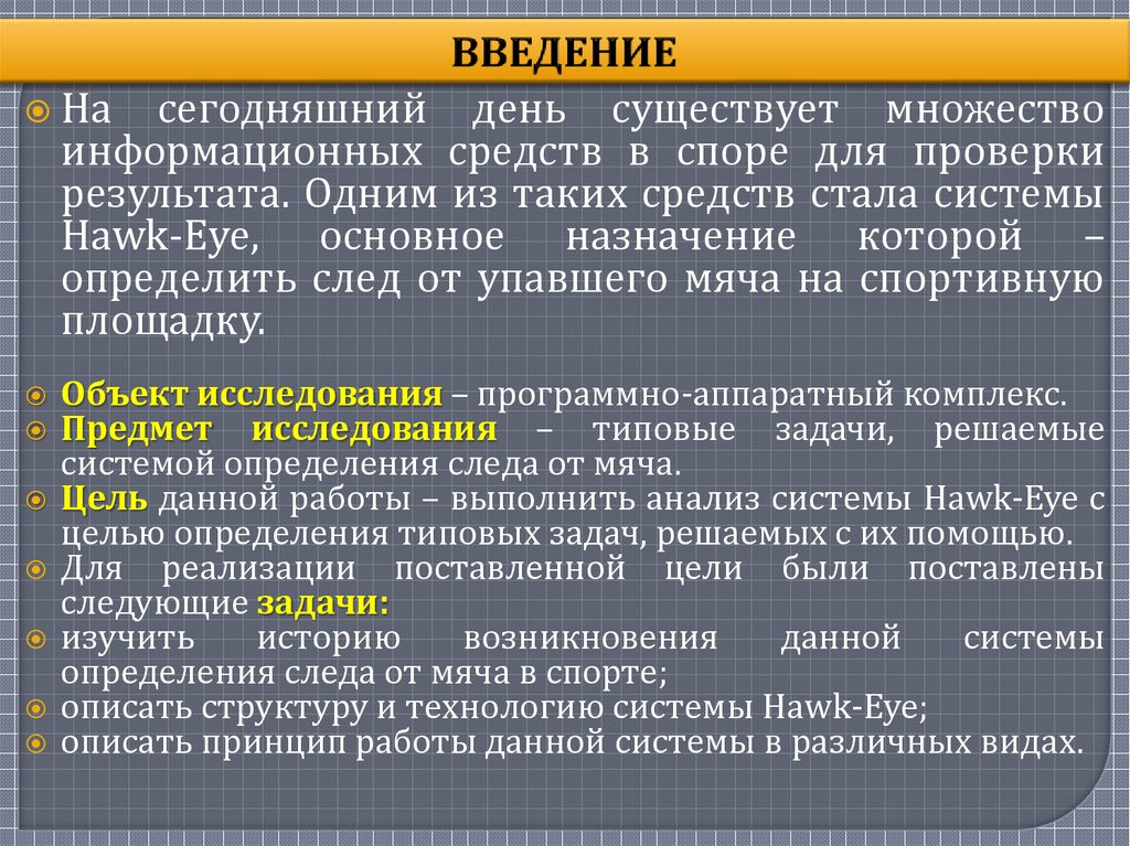 Цель данной работы – выполнить анализ системы Hawk-Eye с