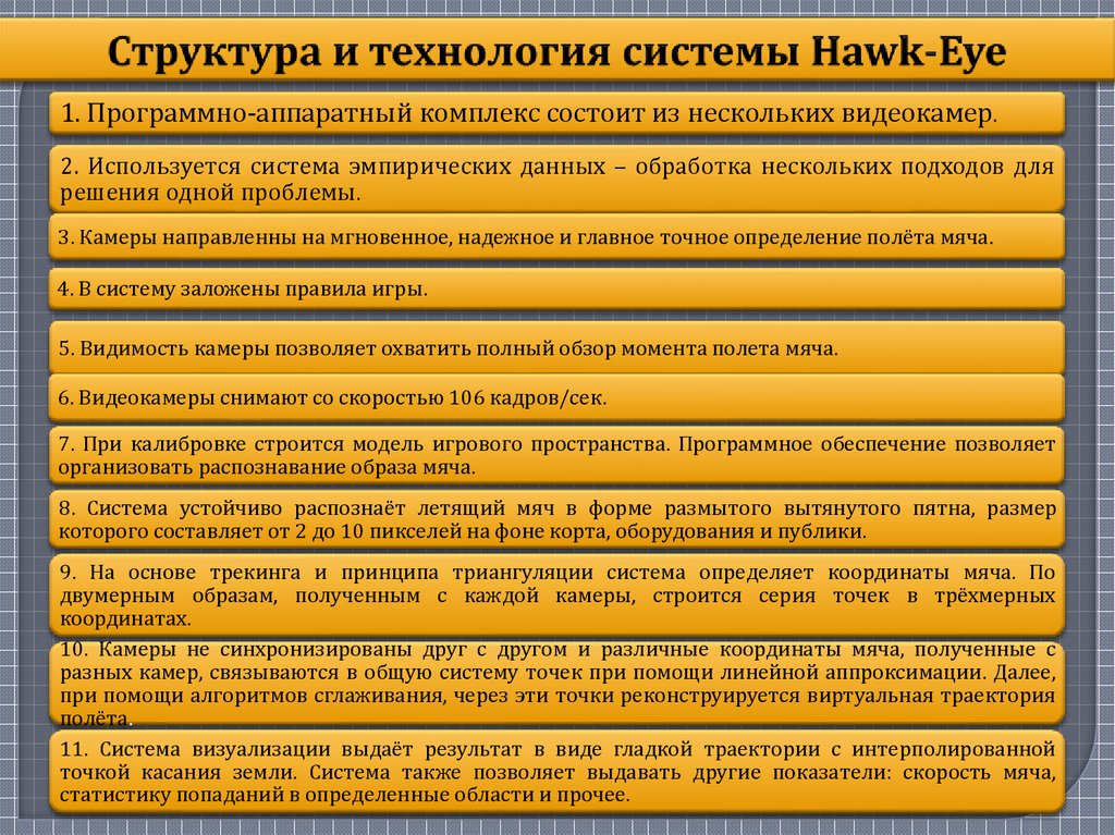 описать структуру и технологию системы Hawk-Eye;