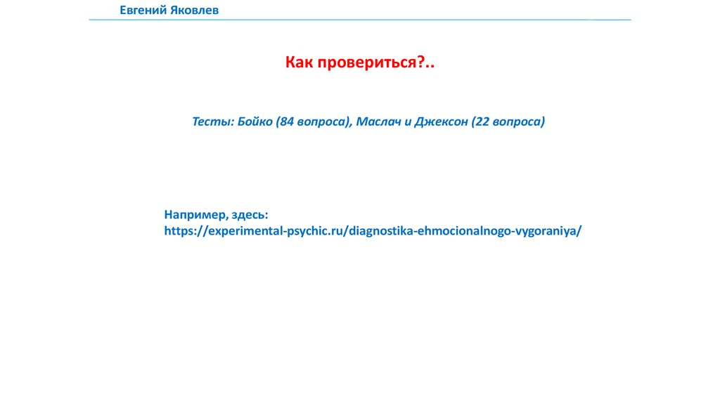 Тесты: Бойко (84 вопроса), Маслач и Джексон (22 вопроса)