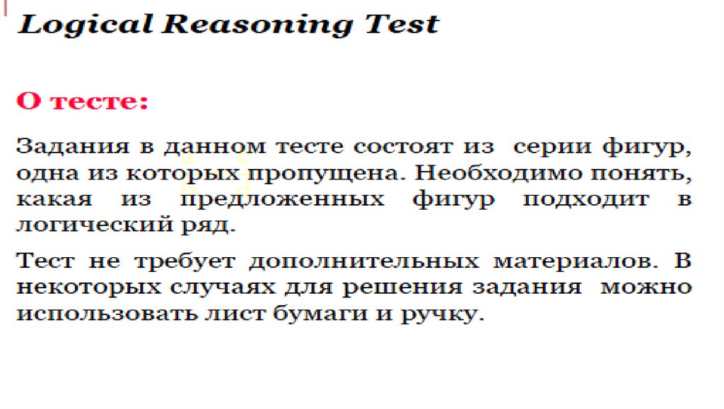 • Психометрические тесты – это тесты на измерение знаний,способностей, компетенций, взглядов и качеств человека