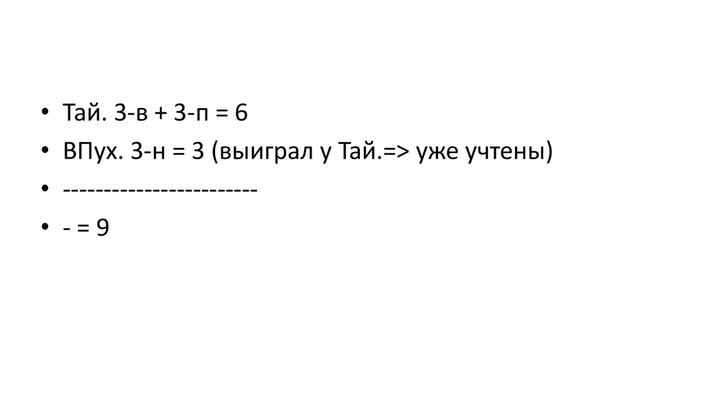 ВПух. 3-н = 3 (выиграл у Тай.=> уже учтены)