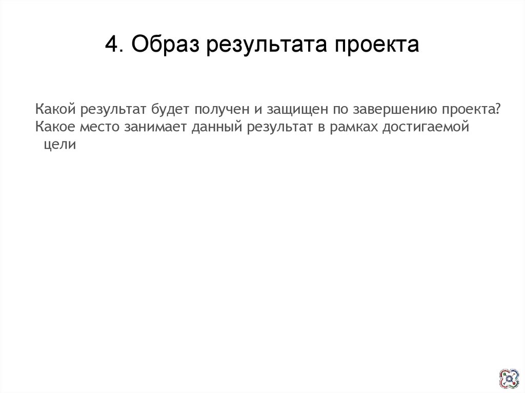 4. Образ результата проектаКакой результат будет получен и защищен по завершению проекта?