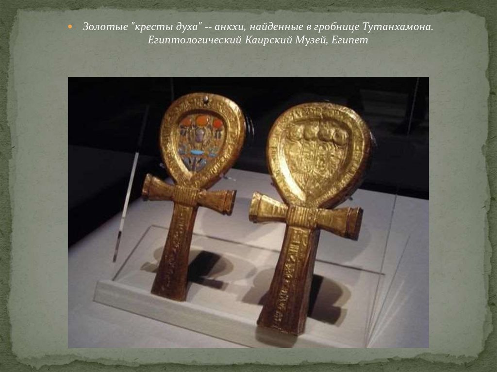 Золотые "кресты духа" -- анкхи, найденные в гробнице Тутанхамона.Египтологический Каирский Музей, Египет