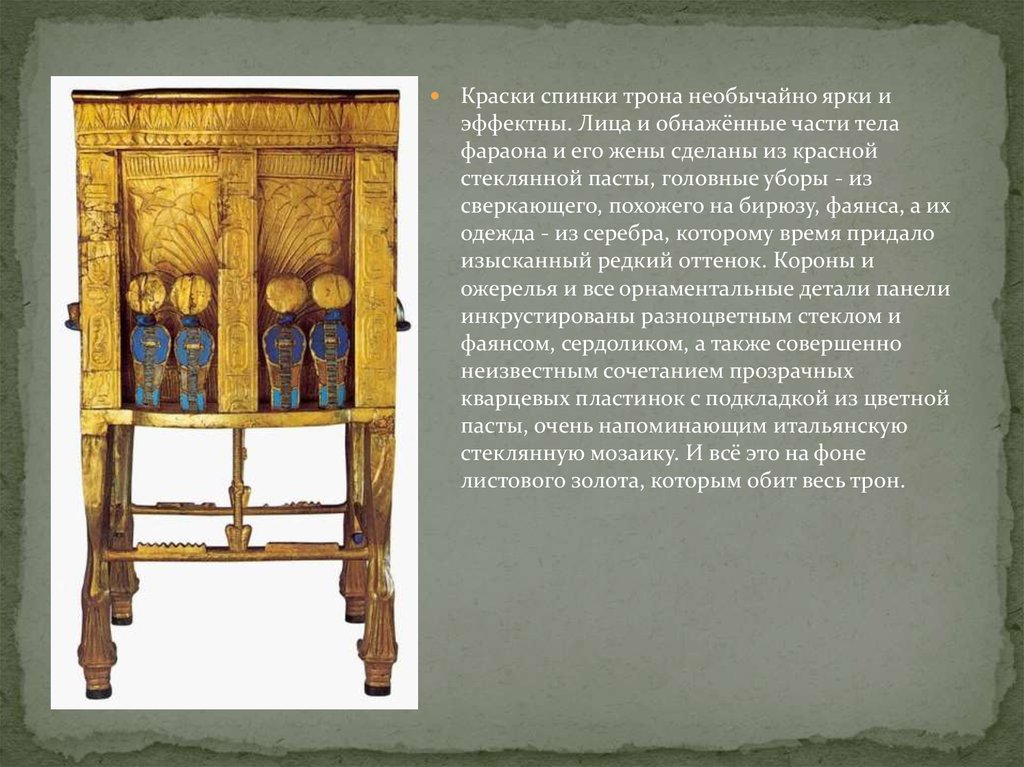 Парадный трон Тутанхамона.Трон полностью обит золотом,