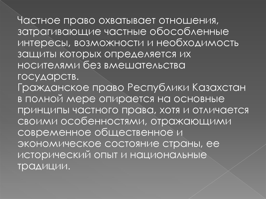 Частное право охватывает отношения,затрагивающие частные обособленные