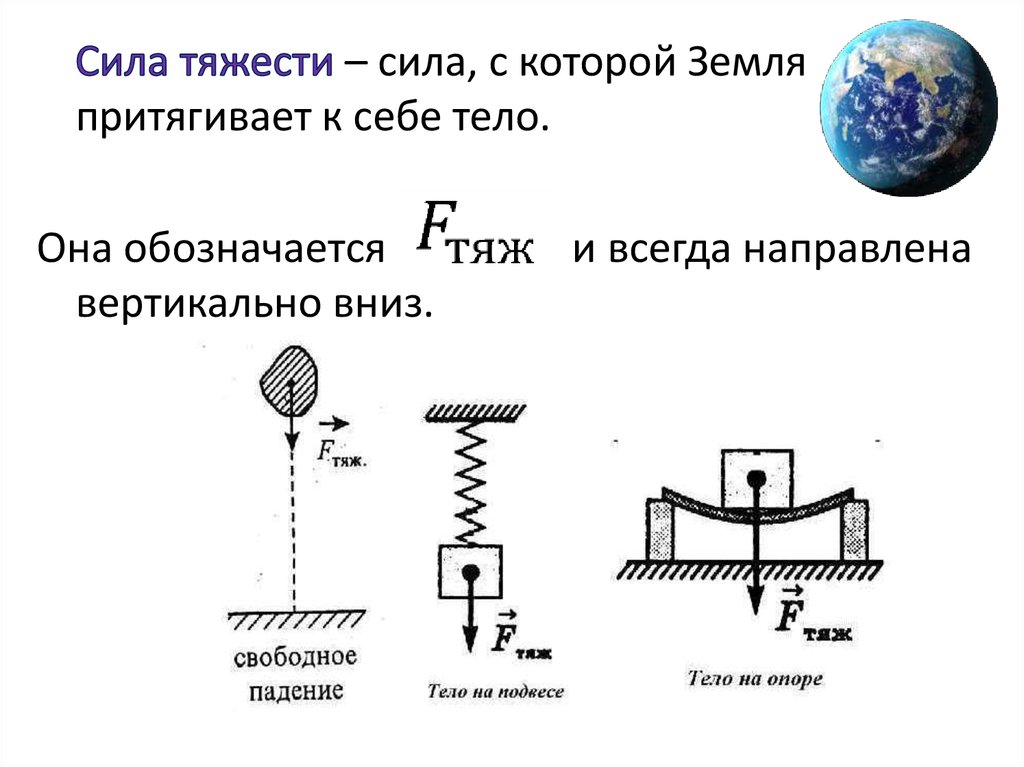 – сила, с которой Земляпритягивает к себе тело.
