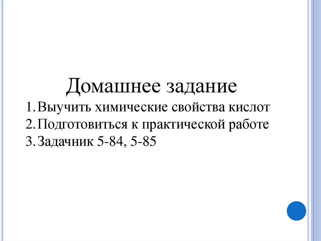 Домашнее задание1.Выучить химические свойства кислот