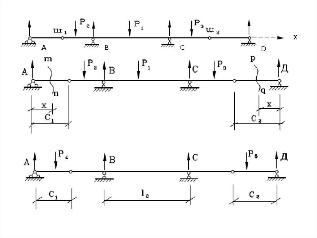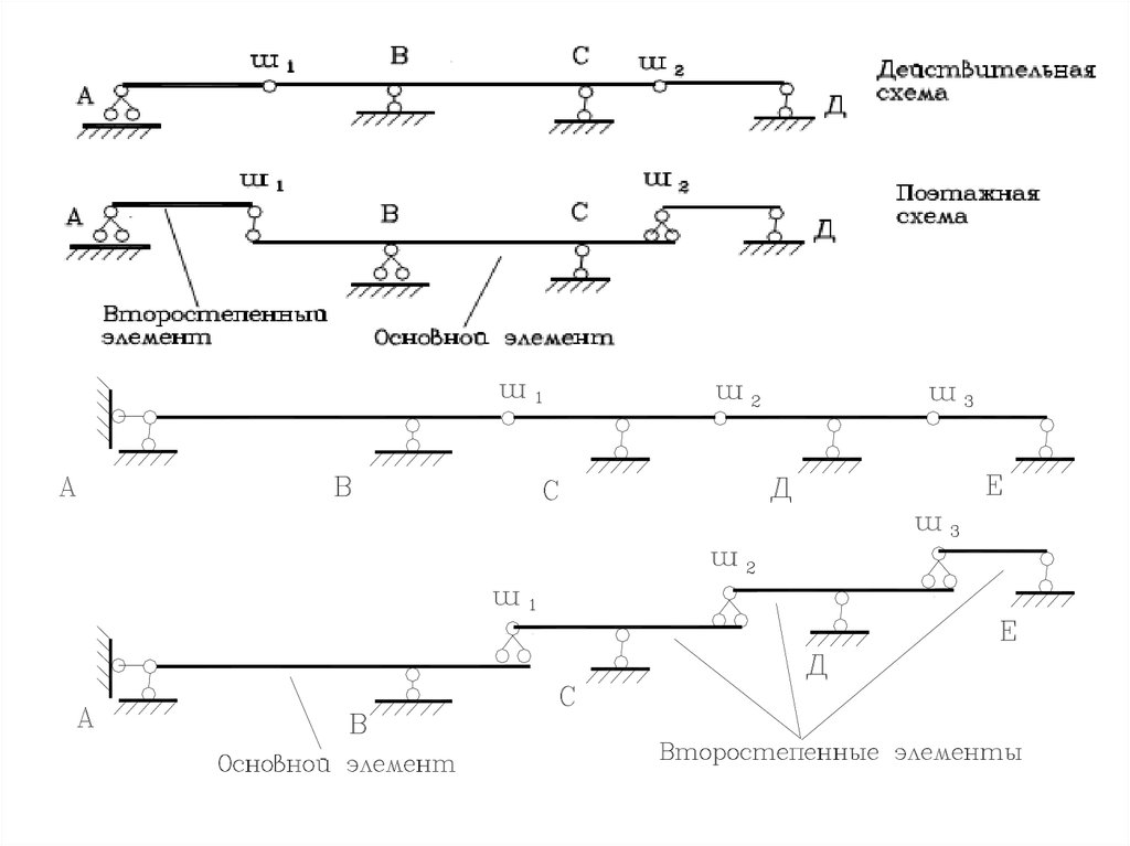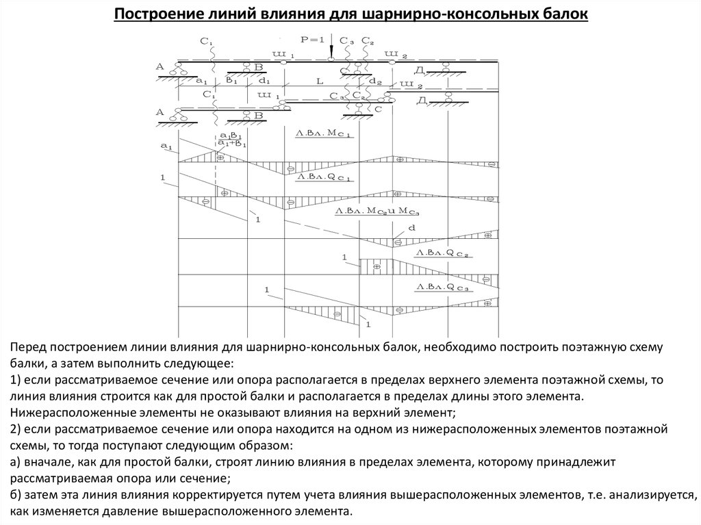 Построение линий влияния для шарнирно-консольных балокПеред построением линии влияния для шарнирно-консольных балок, необходимо построить поэтажную схему