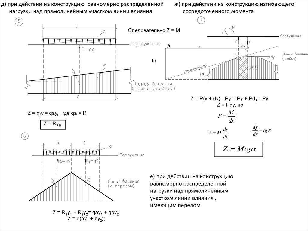 б) составляется уравнение, которое устанавливает зависимость между положением груза на сооружении и