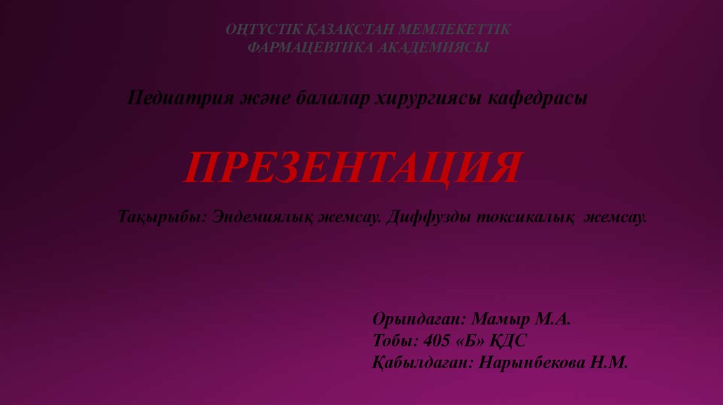 Тақырыбы: Эндемиялық жемсау. Диффузды токсикалық жемсау.