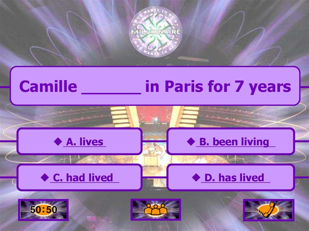 Camille ______ in Paris for 7 yearsA. lives