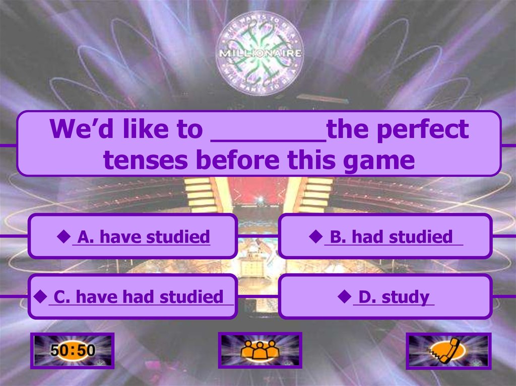 Who wants to be a mnr - perfect tenses