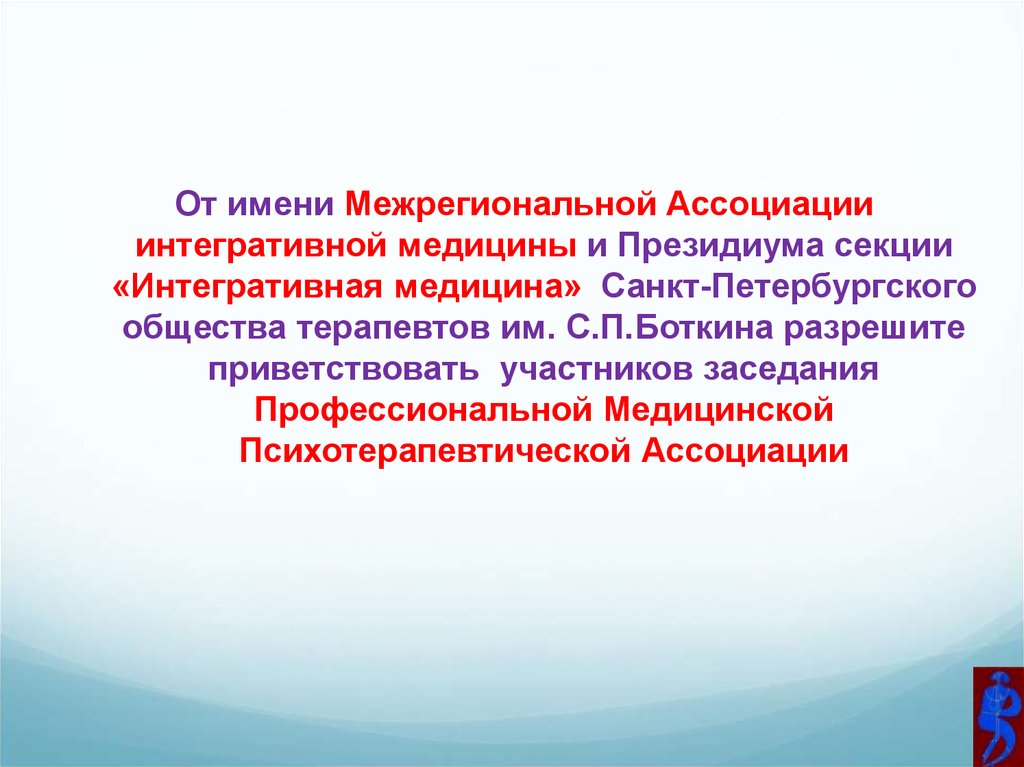 От имени Межрегиональной Ассоциацииинтегративной медицины и Президиума секции