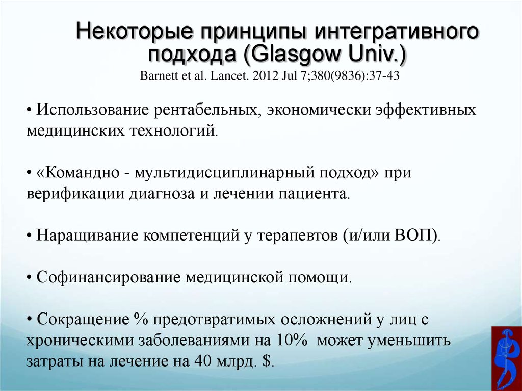 Некоторые принципы интегративногоподхода (Glasgow Univ.)