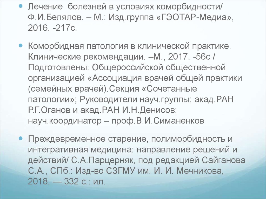 Лечение болезней в условиях коморбидности/Ф.И.Белялов. – М.: Изд.группа «ГЭОТАР-Медиа»,