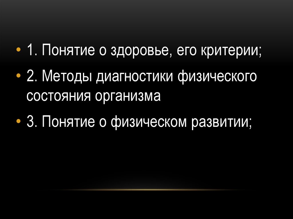• 1. Понятие о здоровье, его критерии;• 2. Методы диагностики физического