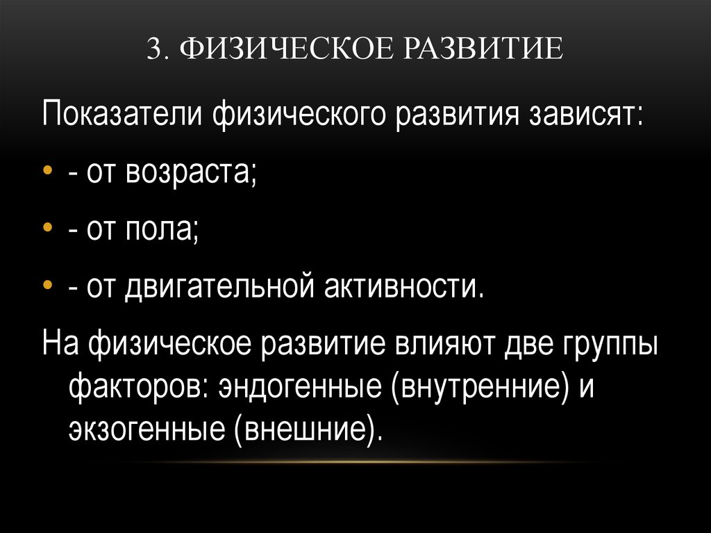 3. ФИЗИЧЕСКОЕ РАЗВИТИЕ• Под физическим развитием