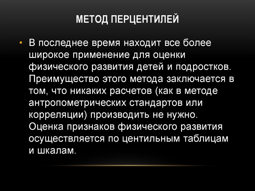 МЕТОД ПЕРЦЕНТИЛЕЙ• В последнее время находит все более