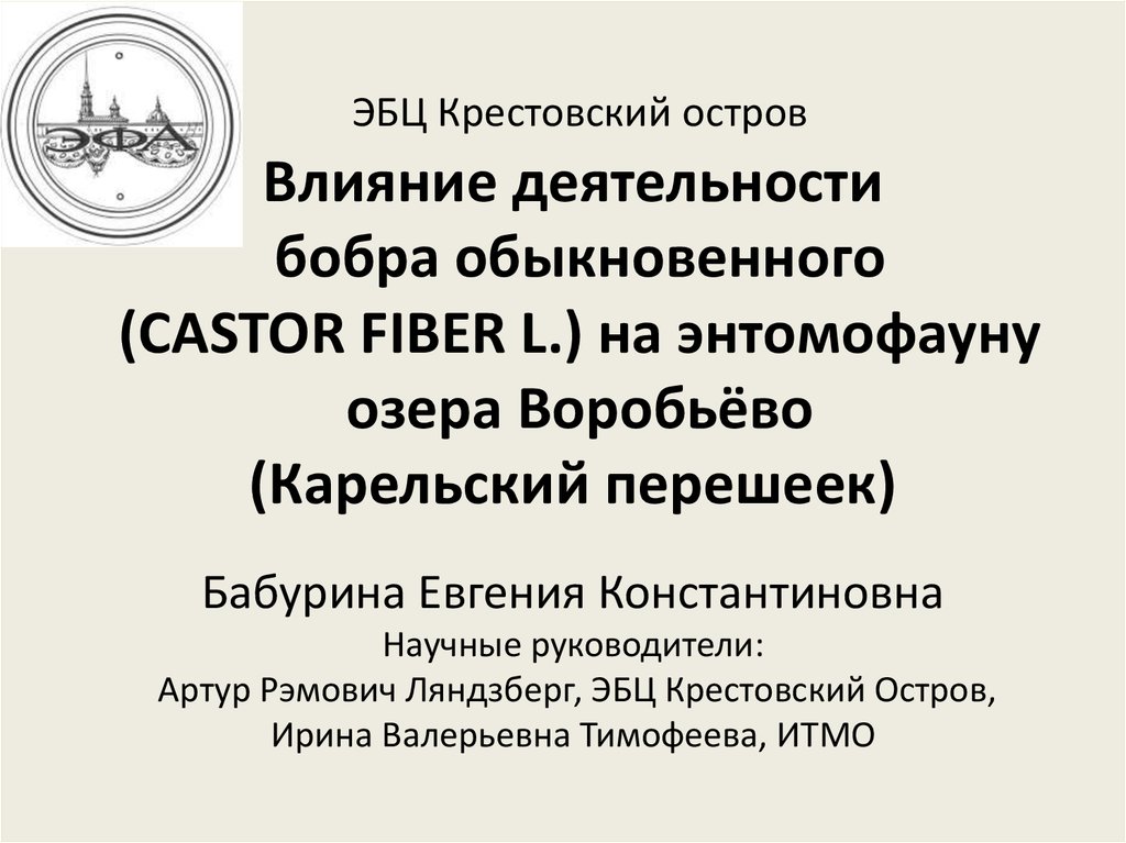 Влияние деятельности бобра обыкновенного (castor fiber l.) на энтомофауну озера Воробьёво (Карельский перешеек)