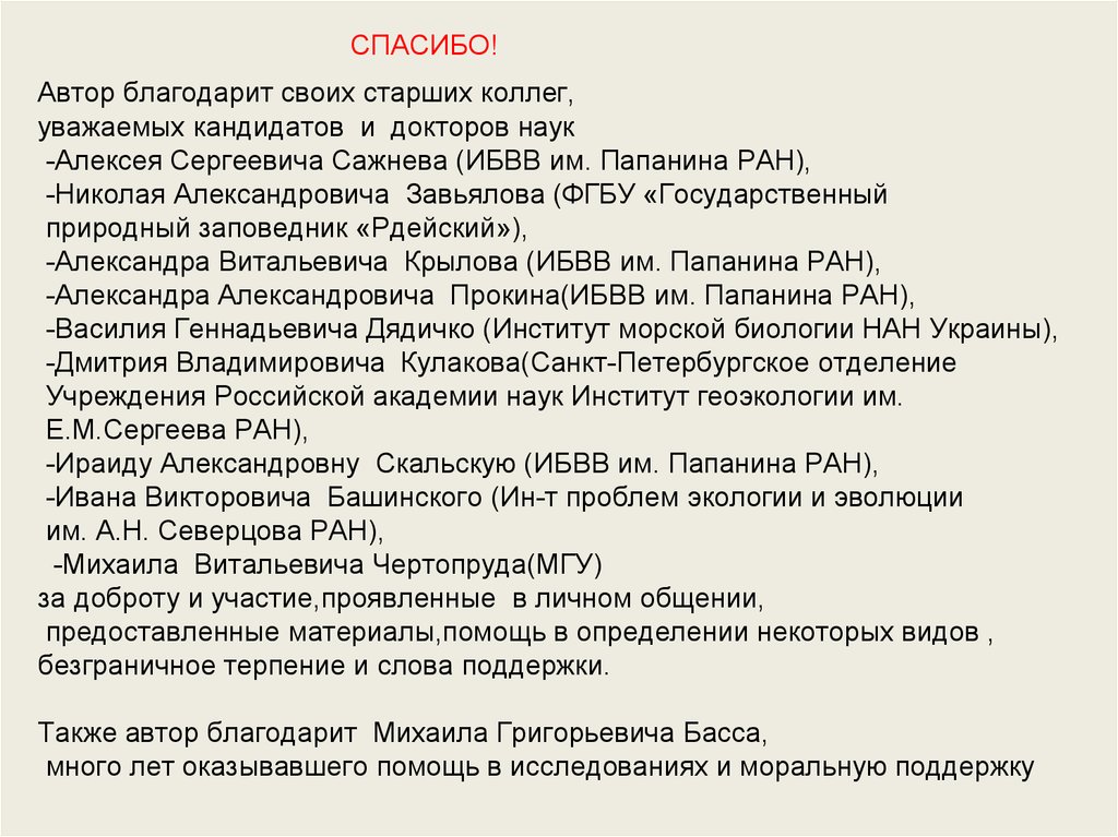 Автор благодарит своих старших коллег,уважаемых кандидатов и докторов наук
