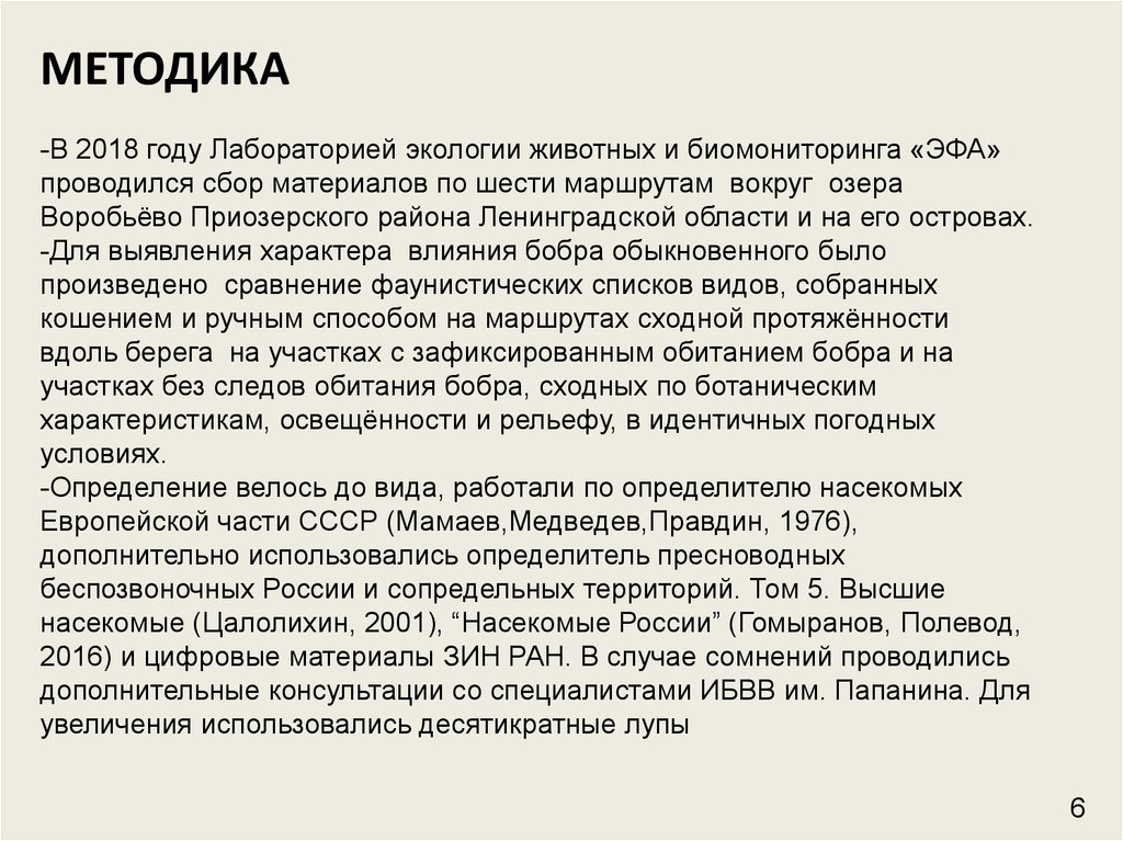 МЕТОДИКА-В 2018 году Лабораторией экологии животных и биомониторинга «ЭФА»