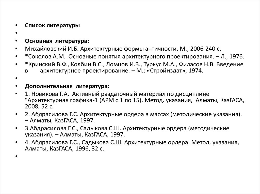 4. Абдрасилова Г.С., Садыкова С.Ш. Архитектурные ордера. Метод. указания,