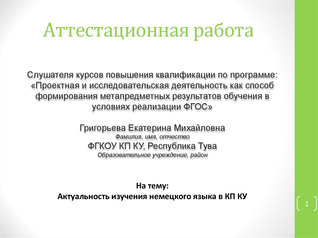 Аттестационная работа. Актуальность изучения немецкого языка в КП КУ
