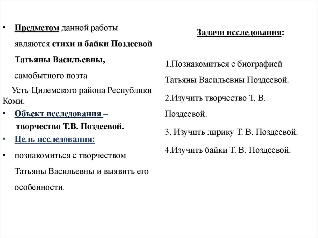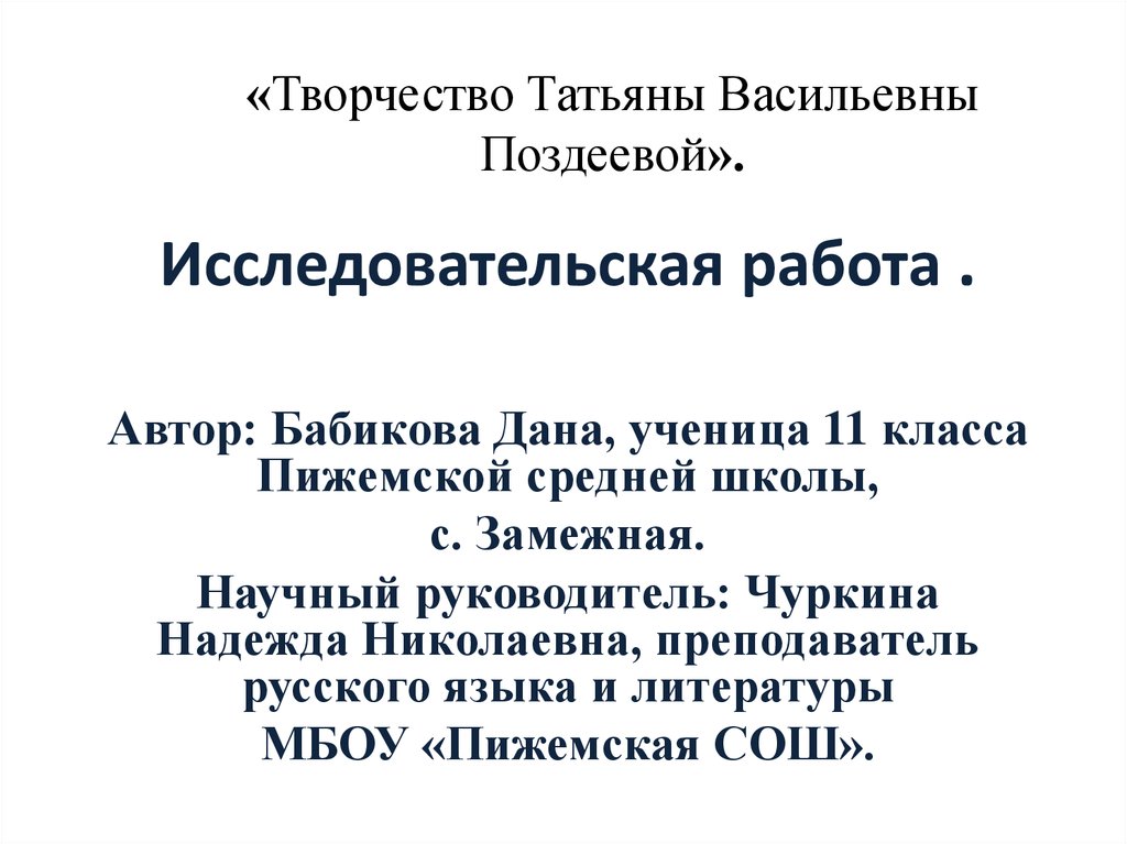 1. «Творчество Татьяны Васильевны Поздеевой».