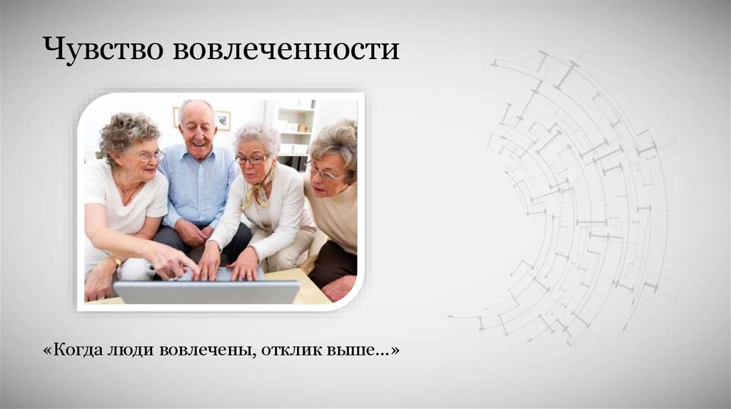 Чувство вовлеченности«Когда люди вовлечены, отклик выше…»