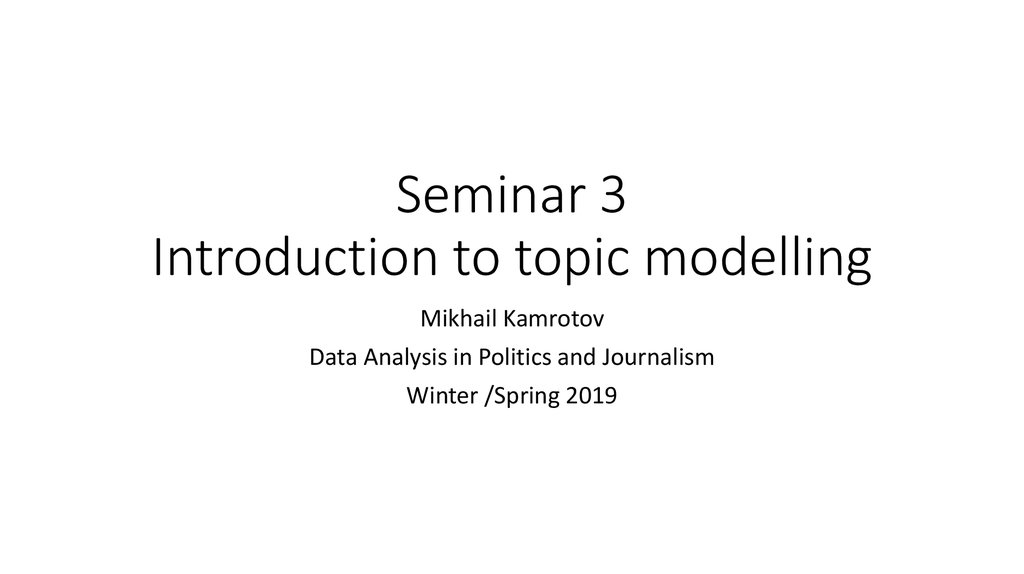 Data Analysis in Politics and Journalism Winter /Spring 2019. Introduction to topic modelling. Seminar 3